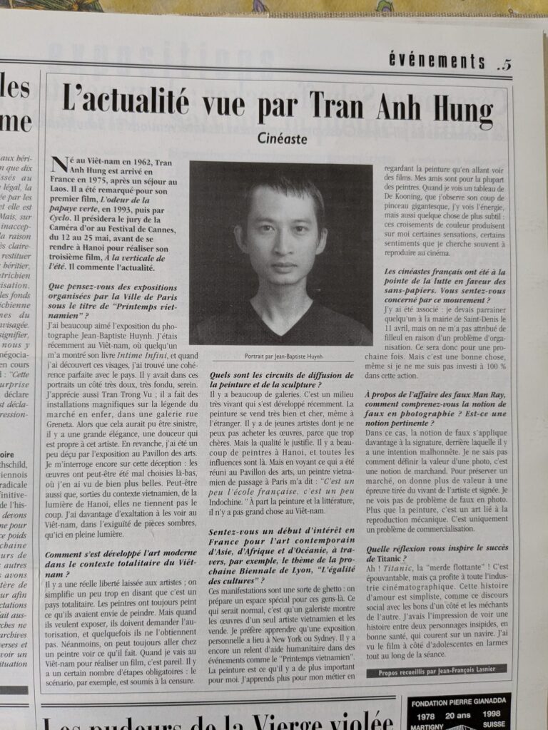 Bài phỏng vấn do Jean-François Lasnier thực hiện, đăng trên tạp chí Le journal des arts số 59 ra ngày 24.4.1998. Ảnh chụp bản gốc trang báo tiếng Pháp ở cuối bài.