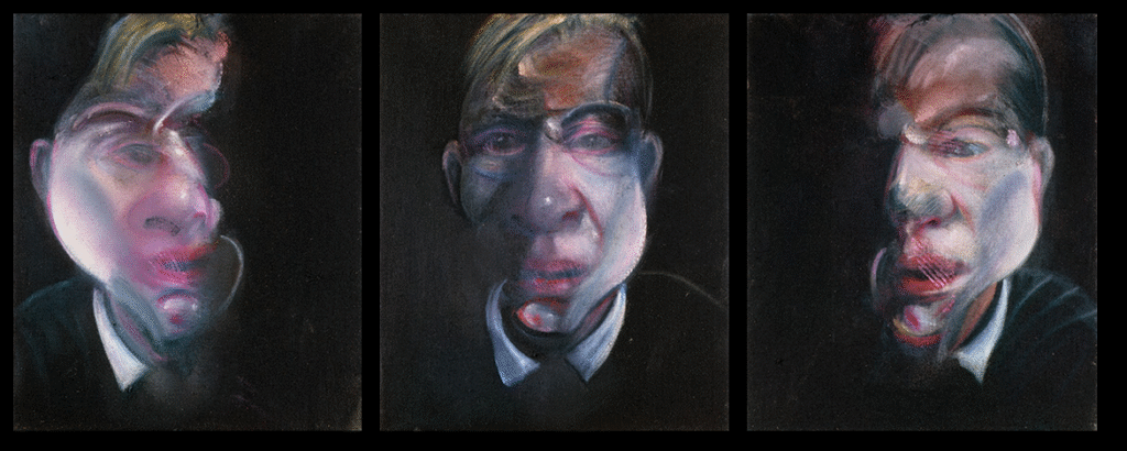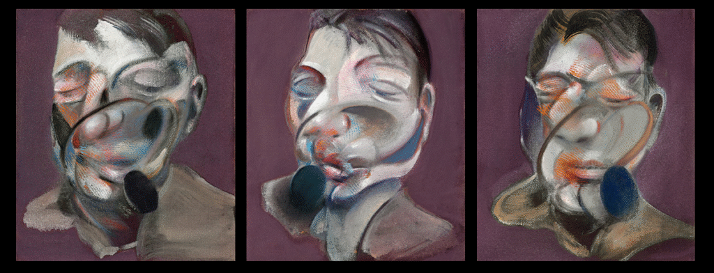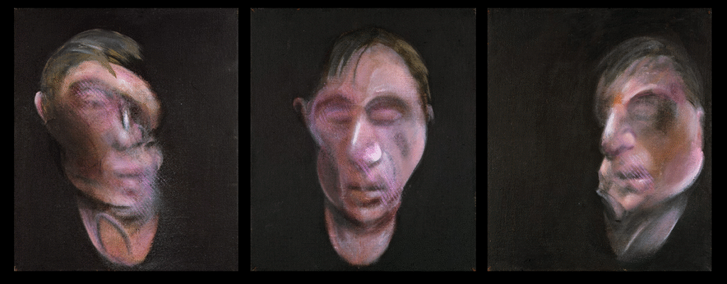 Trong các bức Three studies for Self-Portrait, Bacon chuyển hướng cái nhìn của mình từ thế giới bên ngoài sang thế giới nội tâm. Ông không còn vẽ người khác- những người tình, bạn bè, hay giáo hoàng- mà vẽ chính mình, như một chủ thể đang tan rã giữa thời gian và ký ức. Khuôn mặt ông thường bị bóp méo, kéo dài, hoặc hòa tan trong không gian trống, nhưng điều đó không làm mất đi “cảm giác sống” mà ông luôn tìm kiếm.